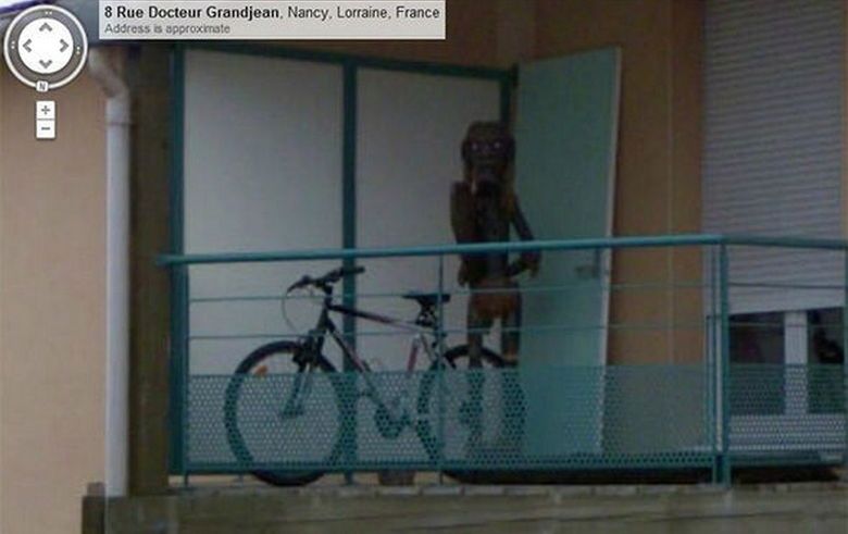 Il servizio Google Maps Street View ha scattato una strana creatura sul balcone della casa a: “8 rue docteur, 54000 Nancy, Meurthe-et-Moselle, Francia. “Chiunque può trovare questo istantanea senza troppe difficoltà, tuttavia …