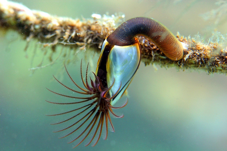 Le anatre marine si nutrono di plancton: sporgono dalla conchiglia zampe di antenne e, filtrandole con acqua, prendono cibo.