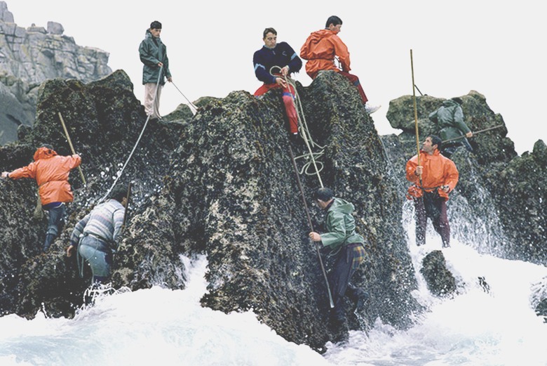 Questo incontro inaspettato si è svolto a Murivay Beach (Nuovo Zelanda), noto per la sabbia nera e per le colonie sule. E si è conclusa rapidamente con vacanzieri pratici anatre raccolte, perché costose prelibatezze marine (più costoso delle ostriche), noto come persebes.