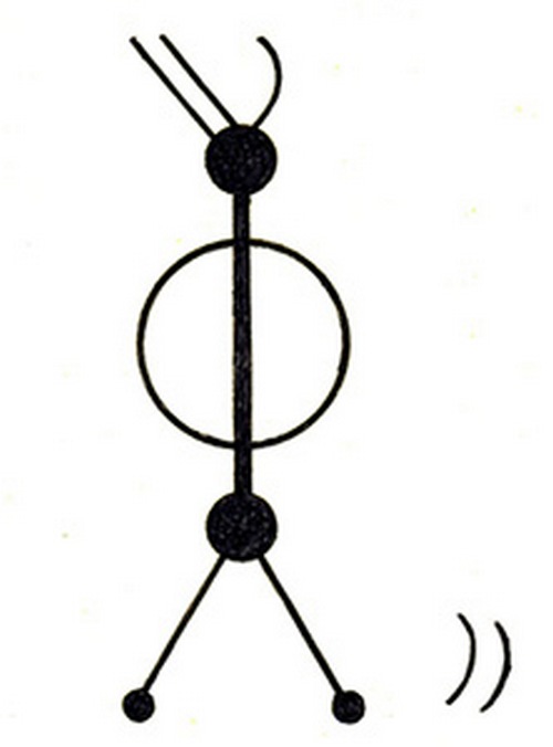 Il secondo disegno, apparso nello stesso 1991 nel nella stessa zona dell’Inghilterra dimostra un umanoide in una posa arrogante – questo solo un uomo, spiega Pavel Khailov. 3 escono dalla sua testa fascio. Uno di questi è curvo, due sono distesi nelle gambe. Lo è significa che la maggior parte della bioenergia umana è disturbata, e quindi i terrestri sono nella spiritualità. Tuttavia 2 raggi diretti escono fuori dalla testa dell’umanoide, lasciando la speranza che tutto sia ancora possibile per riparare, fermare il degrado dell’umanità …