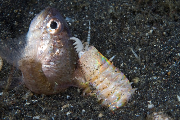 A proposito, insieme alla sabbia e alle pietre di un tale mostro (la sua prole) può essere completamente inserito nell’acquario. Il caso più sorprendente di questo piano è avvenuto nel 2009 presso l’Acquario della Cornovaglia Gran Bretagna Il personale dell’acquario ad un certo punto notato che qualcuno ha iniziato a distruggere i pesci d’acquario. Né trappole né ganci con la lenza su questo misterioso mangiatore di pesci non ha agito, quindi Ho anche dovuto smontare la mostra, dopo di che i dipendenti dell’acquario e ho scoperto questo verme predatore con mascelle potenti e denti affilati e velenosi.